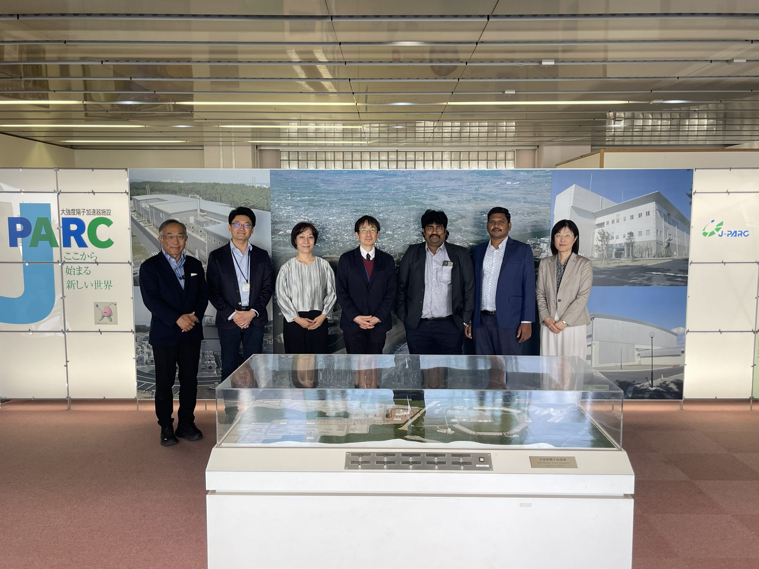 意見交換会終了後には、RECASが研究教育に活用している主要施設の一つであるJ-PARC物質・生命科学実験施設(MLF)の見学を実施しました。見学には、SRMISTの両教授に加え、菊池理事、池田庸子副学長(国際連携)、前田知貴准教授(RECAS)、原田秀郎URA(RECAS)が同行し、J-PARCセンター中性子利用セクションの遠藤仁教授(KEK)およびミュオンセクションのPatrick STRASSER教授(KEK)から、施設の概要や研究内容について説明を受けました。