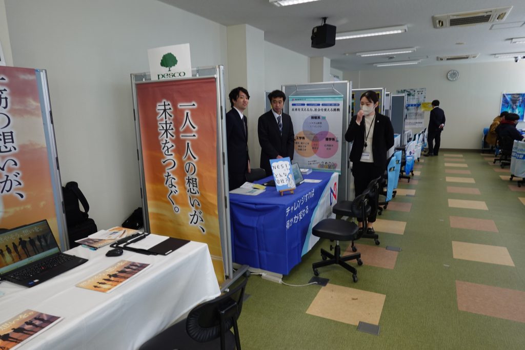 会場には、企業・研究所あわせて32団体がブースを設置し、参加学生は人事担当者の方々と直接話をする貴重な機会を得ることができました。