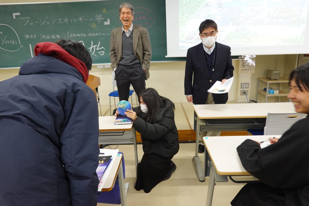 同日には、国立研究開発法人 量子科学技術研究開発機構 QSTアソシエイト・文部科学省 科学技術教育アドバイザーの池田佳隆先生による講演も行われ、核融合炉建設に向けた今後の計画や、将来のエネルギー源としての可能性について有意義なお話をいただきました。