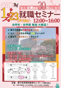 2026年1月23日(金)、茨城大学水戸キャンパスにおいて、原子科学研究教育センター(RECAS)主催の就職セミナーを開催しました。本セミナーは、理学部、日本原子力産業協会、原子力人材育成・確保協議会の協力のもと実施され […]